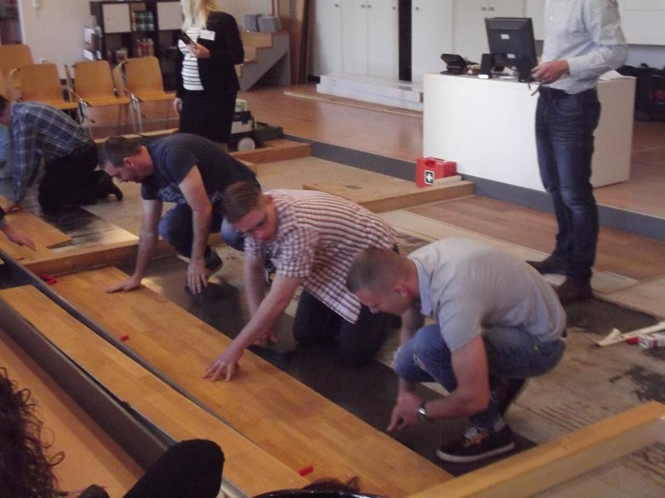 Az utazás során a komoly szakmaiság mellett helyet kapott a játék is – természetesen csak e témában! Laminált padló burkolási verseny volt, melyet az igazán könnyű, burkolási technikának a ragasztást nem igénylő CLICK rendszernek köszönhetően meg is nyertünk! Bizton állíthatjuk, valóban gyors munkát eredményez ez a technológia!
